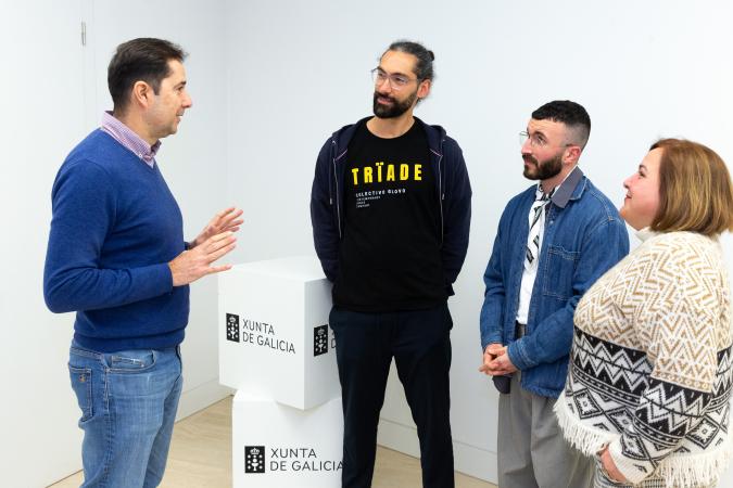 El director de la Axencia Galega das Industrias Culturais, Jacobo Sutil, en representación de la Consellería de Cultura, Lingua e Xuventude, recibió hoy las dos compañías gallegas seleccionadas en la reciente 38ª edición de Dansa València para hacer balance de su paso por esta muestra, referente del sector a nivel estatal. Daniel Rodríguez y Hugo Pereira, de Colectivo Glovo, se mostraron muy satisfechos con la buena acogida de sus espectáculos Transeúnte y Trïade, respectivamente, por parte del público y de los profesionales acreditados en este encuentro, en el que participaron gracias al acuerdo de intercambio promovido por la Xunta a través del comprado Galicia Escena PRO.