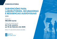 La Consellería de Cultura, Lingua e Xuventude publica hoy en el Diario Oficial de Galicia las bases de las subvenciones para laboratorios, incubadoras y residencias audiovisuales, a través de las cuales destina 180.000 euros a la organización de este tipo de iniciativas de formación y asesoramiento en la creación o desarrollo de nuevos proyectos.
