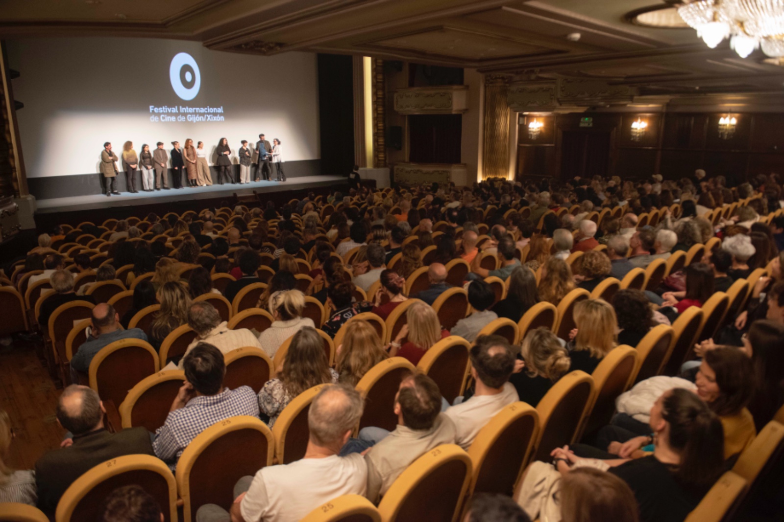 El director de la Axencia Galega das Industrias Culturais, Jacobo Sutil, asistió en el Teatro Jovellanos a la première española de As liñas discontinuas, de Ángeles Fazáns, dentro de la competición oficial del certamen asturiano