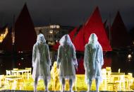 En el montaje del espectáculo, que desarrolla tres pases al aire libre en el muelle de Claddagh, participan más de 30 personas, entre intérpretes, manipuladores y buceadores.