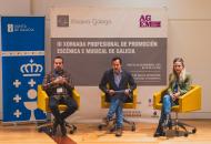 El director de la Axencia Galega das Industrias Culturais, Jacobo Sutil, intervino esta mañana en la apertura de la III Xornada de Promoción Escénica e Musical, que organizan en la Cidade da Cultura los colectivos profesionales Escena Galega e Asociación Galega de Empresas Musicales (AGEM) con el apoyo de la Xunta de Galicia. En ella participan los responsables de la programación cultural de 35 ayuntamientos, festivales y escenarios de Galicia y Portugal, que conocerán de primera mano las novedades del sector a través de presentaciones rápidas, networking y más de 400 reuniones con cerca de 50 productoras, promotoras y distribuidoras gallegas de artes escénicas y de música.