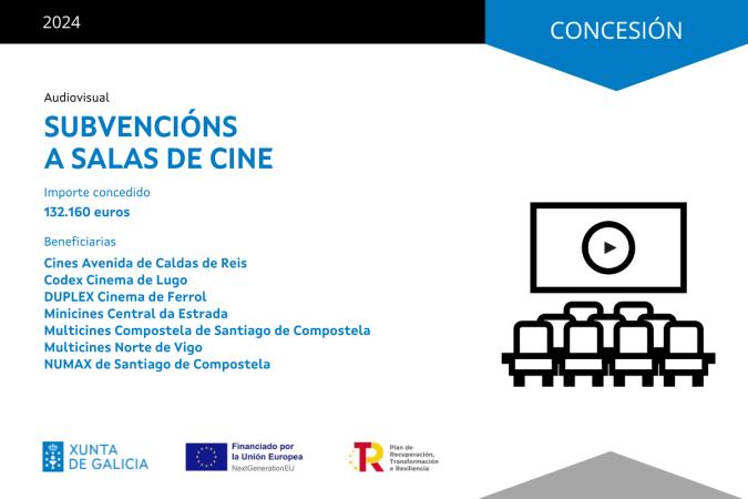 La Xunta de Galicia acaba de publicar la resolución de concesión de su convocatoria anual de subvenciones a salas de cine, a través de la que contribuye con más de 130.000 euros a la actividad de siete espacios de exhibición cinematográfica para facilitar su adaptación a los nuevos hábitos en el consumo audiovisual asociados al crecimiento de las plataformas digitales. Los destinatarios de estas ayudas son los Cines Avenida de Caldas de Reis, Minicines Central de A Estrada, Duplex Cine de Ferrol, Codex Cine de Lugo, Multicines Compostela y Numax de Santiago de Compostela, y Multicines Norte de Vigo, que programan filmes de forma estable en un total de 20 pantallas y suman más de 2500 butacas.
