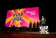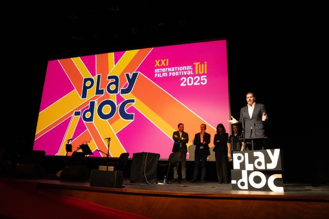 López Campos, que acudió acompañado por el director xeral de Cultura, Anxo M. Lorenzo, aprovechó la oportunidad para exaltar una vez más, delante del público del festival, el buen momento creativo y profesional que vive el audiovisual gallego, con hitos como la competición de las películas Sirat y Romería en el próximo festival de Cannes o el último premio Goya para Cafuné. "Festivales como Play-Doc contribuyen a su impulso al convertirse en un importante escaparate tanto para cineastas ya consolidados como los que están emergiendo y buscan promocionar su trabajo", expresó.