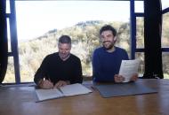 López Campos firma con Oliver Laxe el convenio para la promoción internacional de 'Sirat' en la carrera de los Oscar
