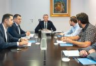 El presidente de la Xunta, Alfonso Rueda, destacó hoy el gran momento que vive el audiovisual gallego y quiso felicitar al sector por la gran labor que llevan a cabo para conseguir este dinamismo. Así lo destacó durante una reunión con los presidentes de la Academia Galega do Audiovisual, Álvaro Pérez, y del Clúster Audiovisual Galego, Alfonso Blanco, y el vicepresidente de Agapi, Xosé Lois Contento, con el fin de abordar su situación actual, los retos que tienen por delante y las oportunidades de este sector en la comunidad.