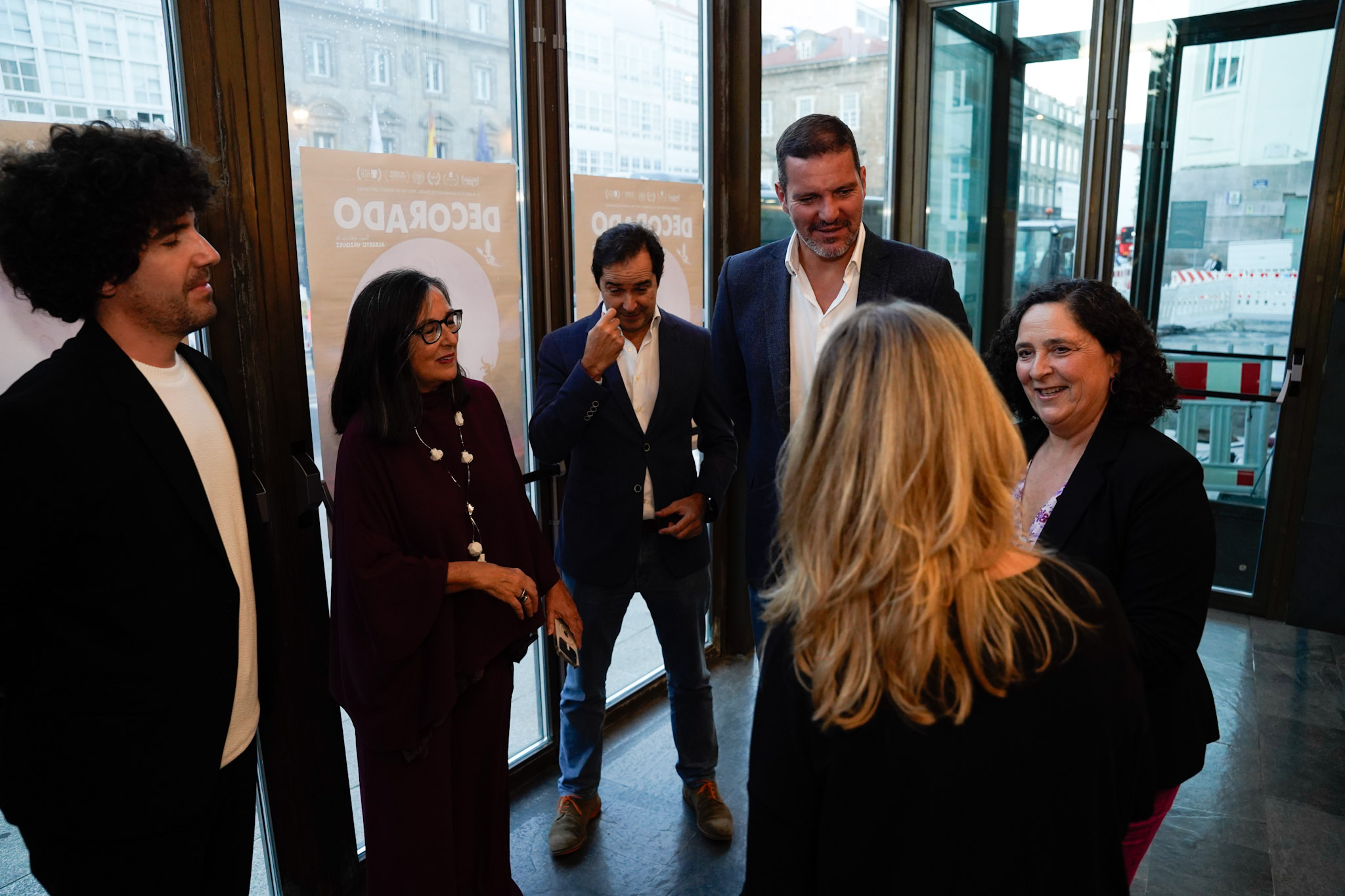 O conselleiro de Cultura, Lingua e Xuventude, José López Campos, acompañado da delegada territorial da Xunta na Coruña, Belén do Campo, asistiu esta tarde no Teatro Colón da Coruña á preestrea de Decorado, a terceira longametraxe de Alberto Vázquez, que chegará ás salas de toda España o vindeiro 24 de outubro. Como xa fixera nos anteriores traballos do cineasta e debuxante coruñés, a Xunta de Galicia cofinancia este novo filme cunha subvención de 260.000 euros para a compañía galega Abano Producións, que encabeza esta coprodución canda a vasca UniKo.