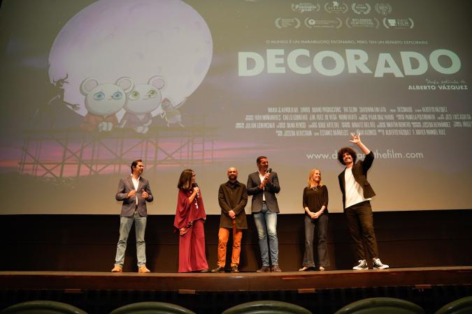 Na súa intervención antes do pase da película, o titular de Cultura do Goberno galego felicitou tanto o director como a Chelo Loureiro e Iván Miñambres, á fronte da produción executiva, ademais de o resto do equipo, pola súa premiada estrea na Sección Oficial do Fantastic Fest de Austin, un dos festivais máis importantes do mundo no seu xénero, onde Decorado recibiu unha mención especial do xurado. Ademais, López Campos fixo fincapé nas boas críticas que a agardada nova longa de Alberto Vázquez está a colleitar tras o seu paso por certames tan destacados como o de Sitges, Ottawa ou o BFI London Film Festival.