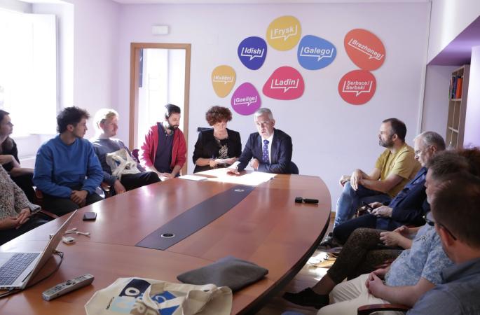 O secretario xeral de Política Lingüística, Valentín García, reuniuse cos participantes no encontro que ten lugar en Santiago ata o día 24, ao abeiro do proxecto europeo Phone para lle dar voz ás linguas propias a través do teatro
