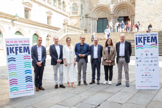 O director xeral de Cultura, Anxo M. Lorenzo, e o director de Turismo de Galicia, Xosé Manuel Merelles, participaron hoxe na presentación do Festival IKFEM que celebrará a súa 11ª edición con máis dunha vintena de actividades artísticas e musicais do 20 ao 25 de xullo en Tui e Valença do Miño co apoio da Xunta de Galicia.