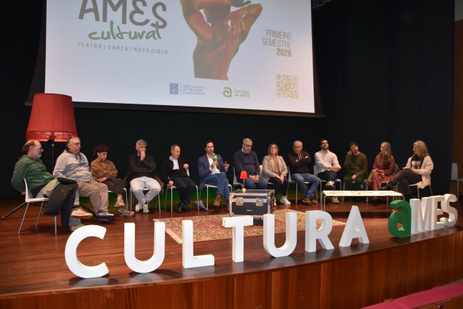 A Casa da Cultura de Bertamiráns acolleu a presentación da carteleira escénica do Concello de Ames para o primeiro semestre de 2026, á que a Xunta de Galicia contribúe co cofinanciamento dunha ducia de citas programadas como parte da Rede Galega de Teatros e Auditorios. Espectáculos como As Gardiás, Iribarne, As formas do amor’, Berenguela na gaiola, O libro da selva: o musical, Variedades Pistacatro ou Ictus (a derradeira leición de anatomía do Dr. Castelao) forman parte da oferta que arrancará o vindeiro 23 de xaneiro e se estenderá ata maio.