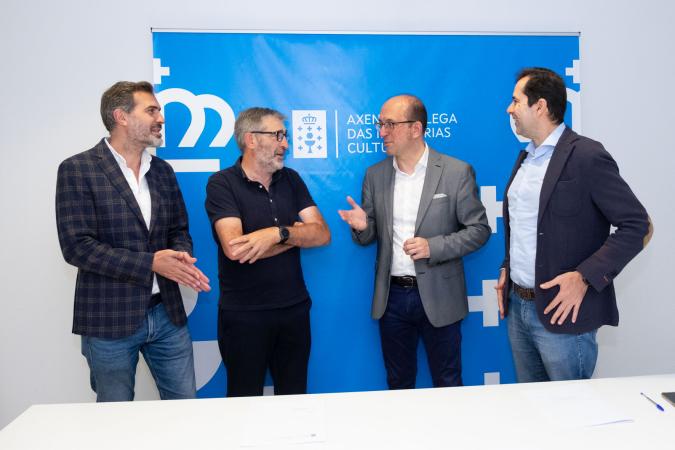 O director xeral de Cultura, Anxo M. Lorenzo, e o director da Axencia Galega das Industrias Culturais, Jacobo Sutil, reuníronse hoxe co presidente da asociación Culturgal, Víctor López, e mais co novo director da feira, Camilo Franco, para abordar as liñas mestras e primeiros eixes de traballo sobre os que xirará a 16ª edición do evento, que se celebrará en Pontevedra no mes de novembro.