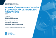 Coa publicación destas bases, serán seis as convocatorias xa en marcha dentro do programa autonómico de axudas ao sector para 2025. En decembro abríronse as destinadas a proxectos de videoxogos con 150.000 euros e á organización de festivais audiovisuais con 300.000 euros. Seguíronlles as subvencións para laboratorios de creación e desenvolvemento de proxectos con 180.000 euros, as de promoción do talento audiovisual galego con 176.000 euros e as de comercialización e difusión en festivais e foros de negocio especializados con 70.000 euros.