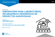 A Xunta publica hoxe no Diario Oficial de Galicia as bases e a convocatoria dunha nova liña de subvencións dirixida ao audiovisual galego, que en 2024 se incorpora de xeito extraordinario ao programa anual de axudas ao sector da Consellería de Cultura, Educación, FP e Universidades. A través dela, destínanse 200.000 euros á organización, por parte de entidades privadas, de laboratorios, incubadoras ou residencias para a formación e o asesoramento tanto na creación como no desenvolvemento de novos proxectos para cinema e televisión.