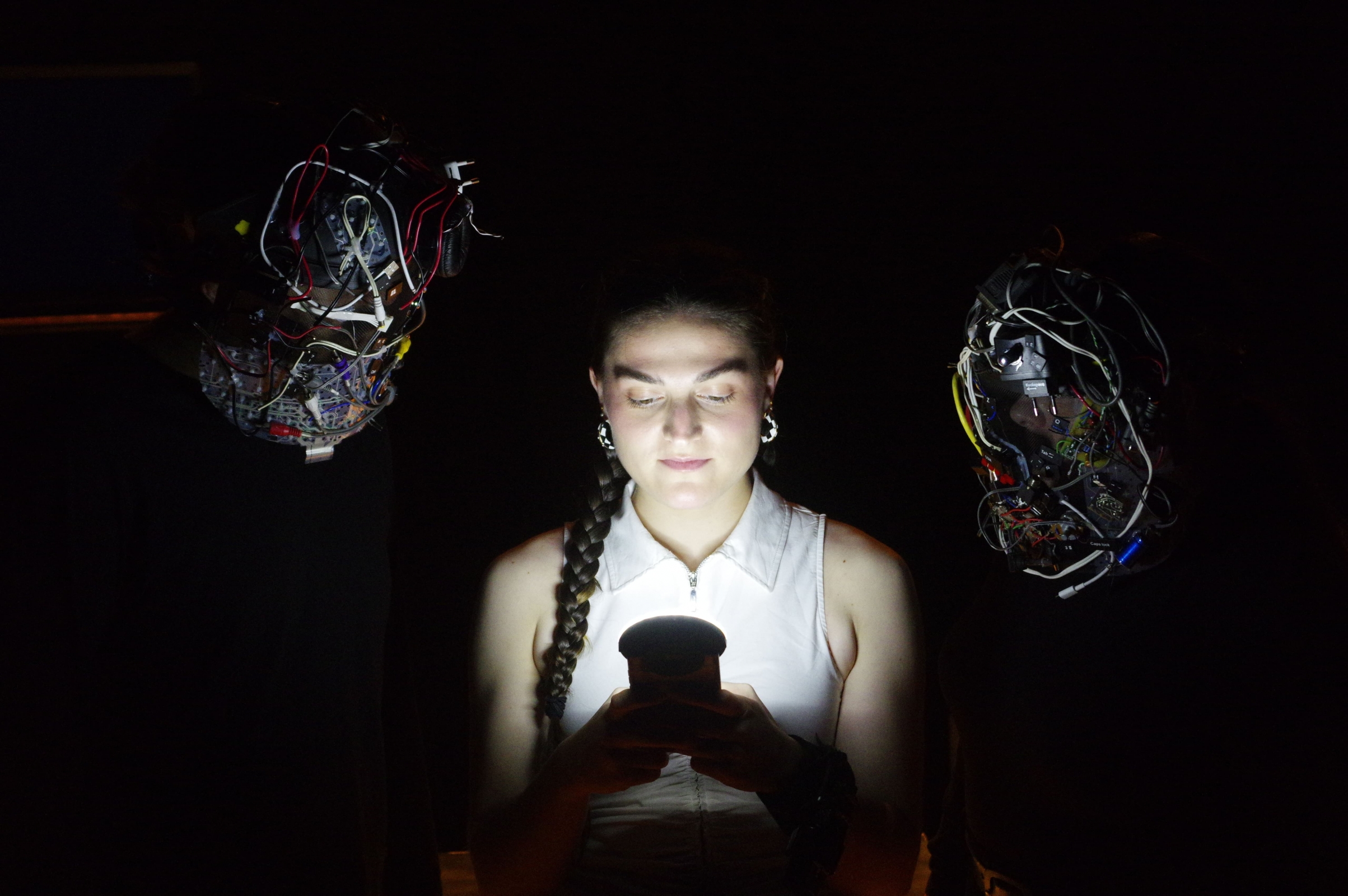 A cámara escura fala das vítimas de ciberacoso que se ven conducidas cara un buraco negro de desprezo e dor. Trata das persoas culpábeis que, agresión tras agresión, van construíndo un perigoso perfil de cara ao futuro. A cámara escura diserta sobre esas nais e pais que ven, con absoluta impotencia, rotas/os ás súas fillas e os seus fillos. A través de Alicia, esa rapaza dividida en dúas voces internas, podemos asomarnos á realidade que sofren cada día máis adolescentes a nivel mundial.