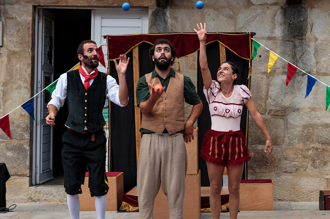 Ghop! imprime con enerxía un espectáculo coa estética clásica dos circos ambulantes que no pasado percorrían as prazas dos pobos e aldeas. Os tres protagonistas, vestidos e caracterizados para a ocasión, aderezan con malabares, monicreques, acrobacias e pinceladas de maxia o show de variedades que esta compañía itinerante ofrece a un público desexoso de divertirse e participar.