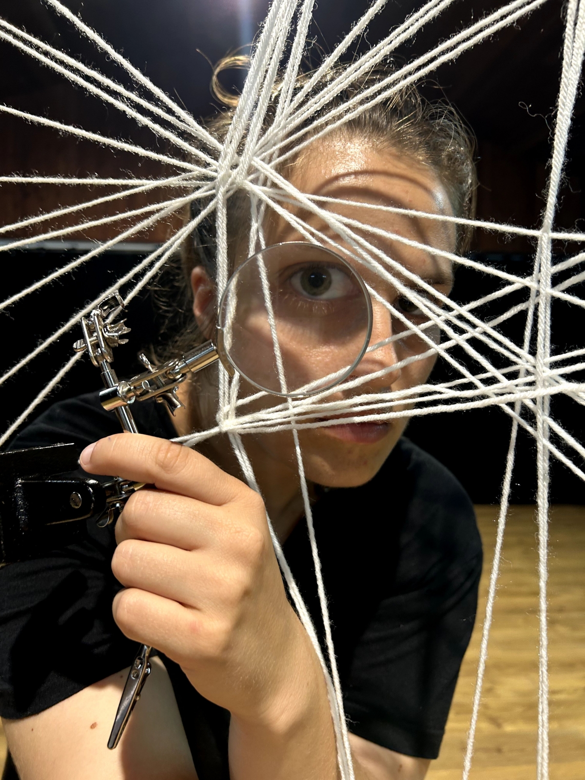Da man da súa creadora, Raquel G. Crespo, a obra propón unha reflexión sobre o valor dos oficios tradicionais e sobre o papel das mulleres no ámbito téxtil, utilizando o teatro como ferramenta para divulgar e reivindicar estas profesións. Trátase dun espectáculo de carácter familiar protagonizado por unha muller, metade actriz, metade costureira, que percorre o mundo co seu carromato: un fogar con rodas que é, ao mesmo tempo, escenario e taller. Viaxa soa, pero sempre acompañada. Xunto a ela, unha araña discreta, incansable, tecedeira de silencios.