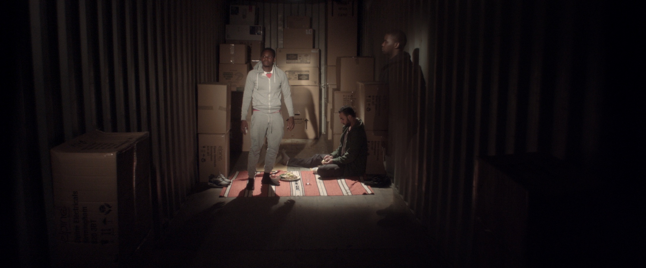 Nun contedor, entre caixas de mercadorías, dous homes de diferentes países contan o seu exilio. Os seus relatos e os seus infinitos pasos fronteirizos únense nun soño común: chegar a Inglaterra.
