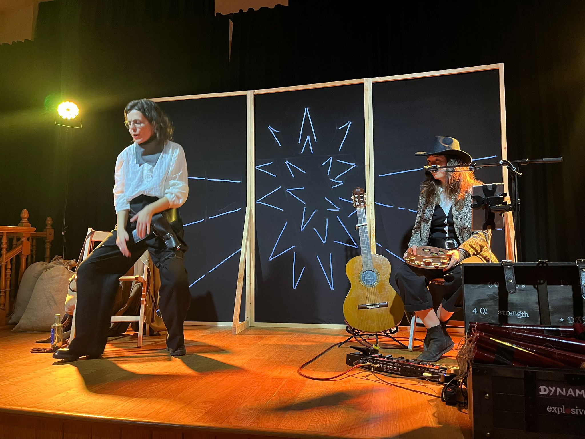 Están as noveliñas de vaqueiros. Eses clásicos libros finiños da colección ESTEFANÍA. Están os westerns do cine, que chegaron a nós excelentemente dobrados ao galego. E por suposto, están os westerns modernos. Todos teñen elementos comúns: hai certa violencia, a paisaxe ten un papel fundamental, as vilas son pequenas, o epicentro é a taberna, despútanse o poder, o orgullo e o territorio, as bandas sonoras son épicas, protagonízanos personaxes rurais que andan co gando e moitas veces ten peso o humor negro. Ademais todos acontecen no oeste. No lonxano oeste. Mais Vaites, rapariga! vén propoñer historias dun achegado oeste. Concretamente nor-oeste. O noso. Con historias que conteñen exactamente os mesmos elementos que os dos westerns ata o de agora coñecidos, dialogando directamente coa música. Unha comedia negra contada por Carmen “Lingua afiada” Conde e cantada por Su Garrido “Guitarra Lenta” Pombo. Dúas mulleres man a man na praza da vila, que van levar con elas a cada escenario. Narración oral e música ao vivo no novo western de Tarabela Creativa.